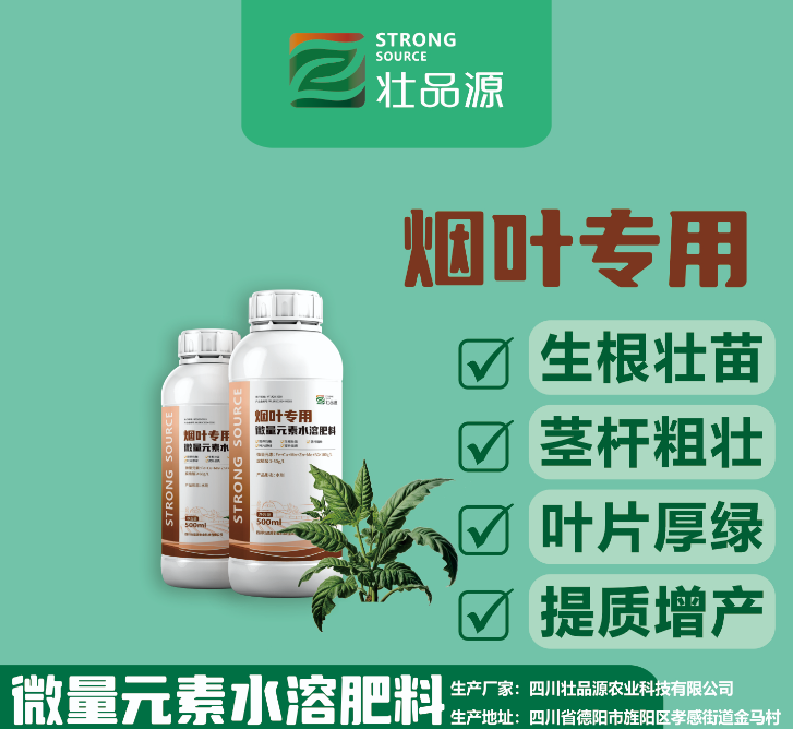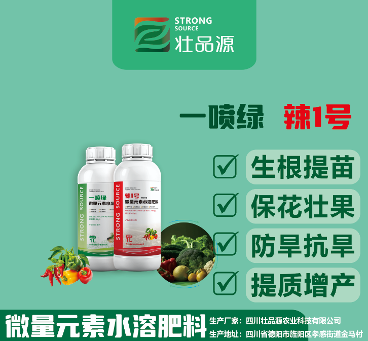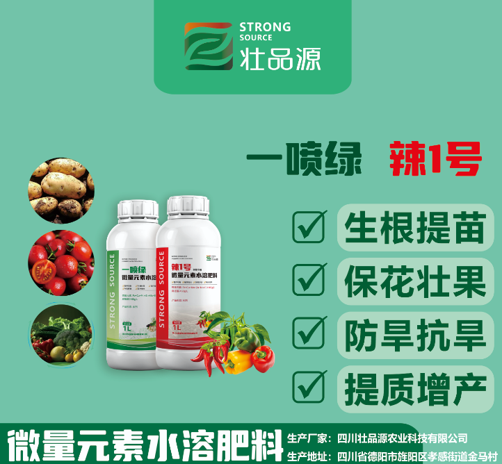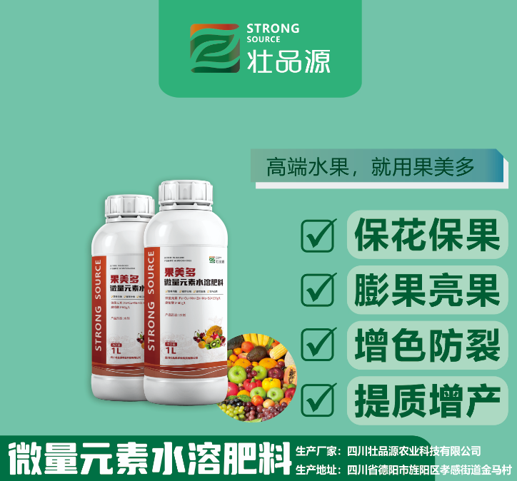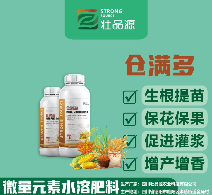 四川壮品源农业科技有限公司是精准高能微量元素水溶肥料专业研发生产厂家,公司拥有稳定的技术团队,在微肥领域拥有强大的研发和制造能力,针对不同植物、不同土壤、不同生长环境、作物对每个生长阶段的微量元素、营养元素的需求,都有着靶向精准的定制化产品,能够为客户提供植物精确营养一站式综合解决方案,精确指导种植户精确施肥,避免盲施、过施,稳定增效,优化土壤,确保出产更多的质优、安全、生态高品质农产品。